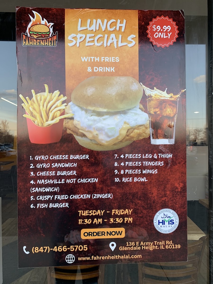 Welcome to Fahrenheit Halal, a culinary gem located in Glendale Heights, IL. This vibrant eatery offers a mouthwatering menu that celebrates the art of Halal cuisine. Their standout items include the delectable Buffalo Wings, available in various quantities, ensuring that every wing lover is satisfied. For those seeking comfort food, the Chicken and Gyro Over Rice dishes provide hearty, flavorful options that are perfect for a filling meal.